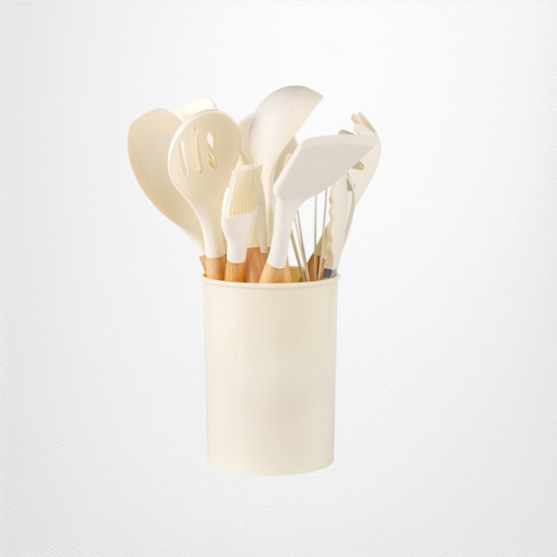 Küchenhelfer-Set, 12-teilig, Weißes Silikon mit Holzgriff, moderner INS-Look