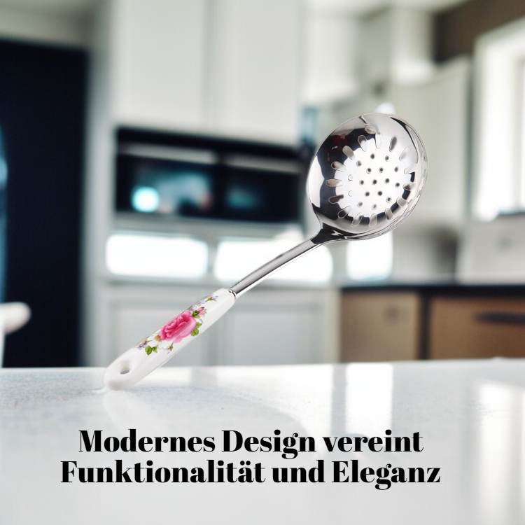 ● Hochwertiges Küchenhelfer-Set aus rostfreiem Edelstahl mit edlen, ergonomischen Keramikgriffen – langlebig und stilvoll für jede Küche.