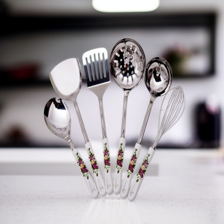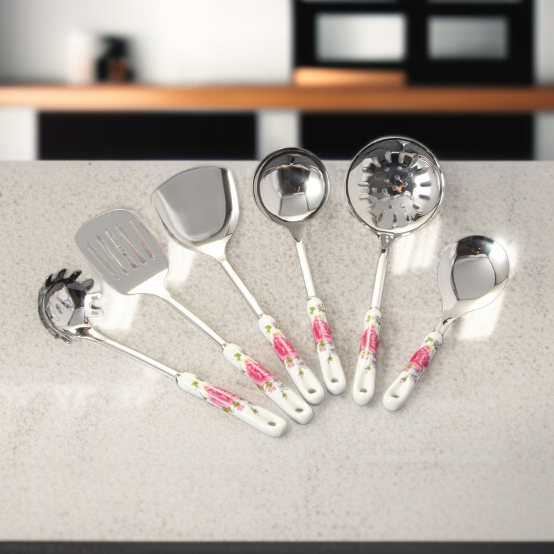 Küchenhelfer-Set aus Edelstahl mit Keramikgriff, Kochlöffel und Küchenschaufel, 6 Stück